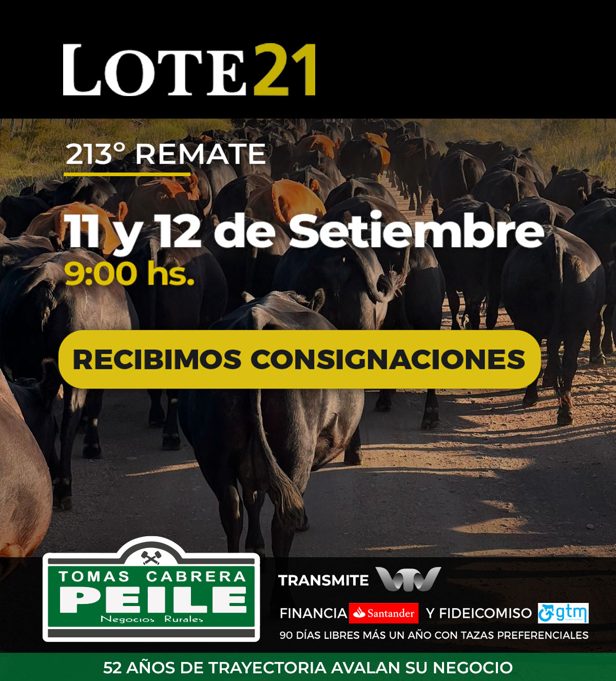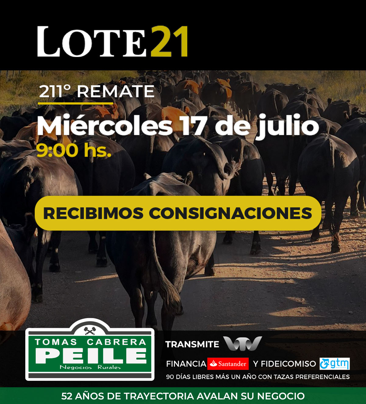 Este Jueves 23 de Mayo, remate especial, desde Buenos Aires, Argentina se realizará el 20º Remate de Lote 21.