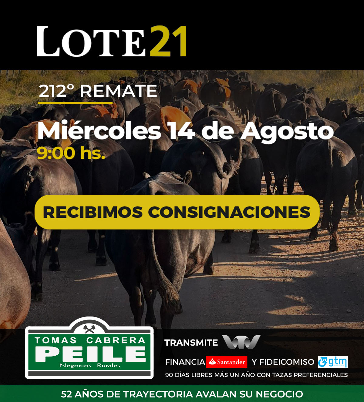 Este Miércoles 14 de Agosto, remate especial, desde el Club Fuerza Aérea de Montevideo se realizará el 212º Remate de Lote 21.