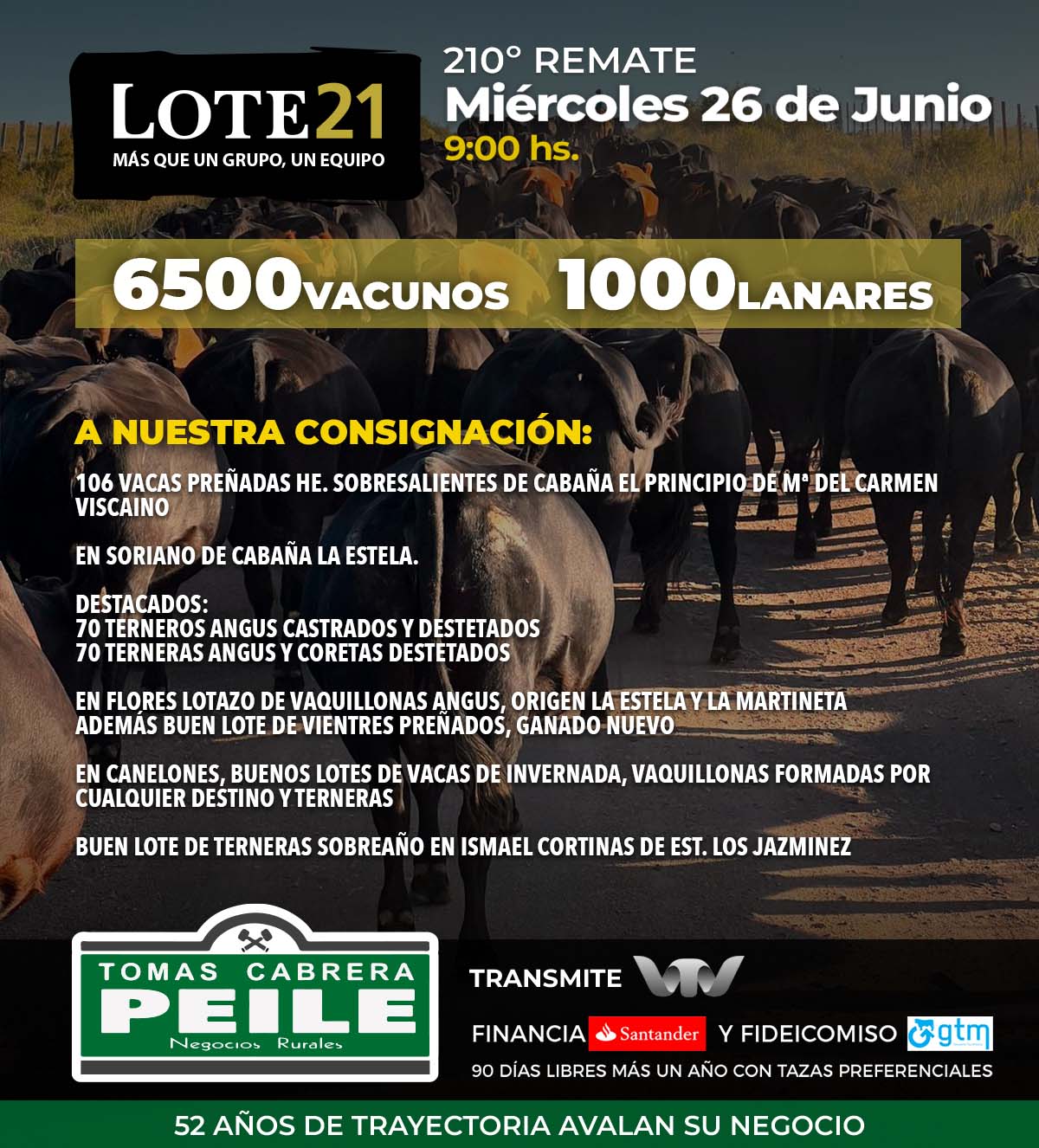Este Miercoles 26 de Junio, remate especial, desde el Club de Golf de Montevideo se realizará el 210º Remate de Lote 21.